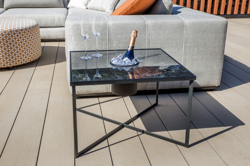 De sidetables zijn verkrijgbaar in verschillende ontwerpen en kunnen volledig worden aangepast aan uw voorkeuren, dankzij het frame dat in iedere RAL kleur leverbaar is. Dit maakt ze perfect te combineren met uw bestaande buitenmeubelen, zodat ze naadloos aansluiten bij de stijl van uw ruimte.