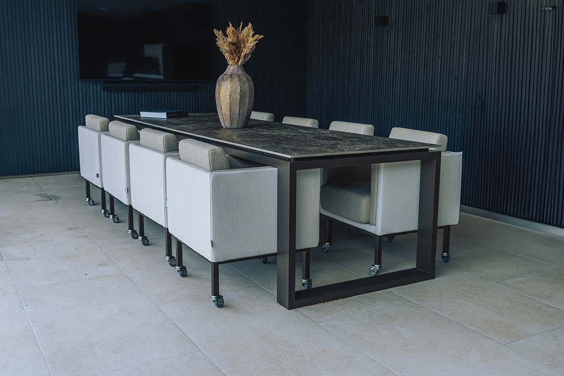 Mit Design2Chill erleben Sie die Freiheit eines Innenraums, der nahtlos in Ihren Außenbereich übergeht. Die gleichen Linien, Farben und Materialien schaffen ein Gefühl der Kontinuität, während Sie sich überall entspannen können – vom Wohnzimmer bis zur Terrasse.