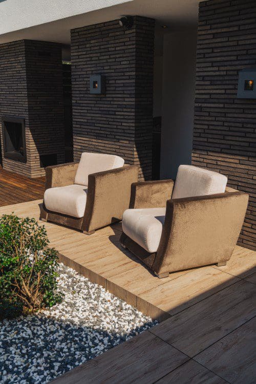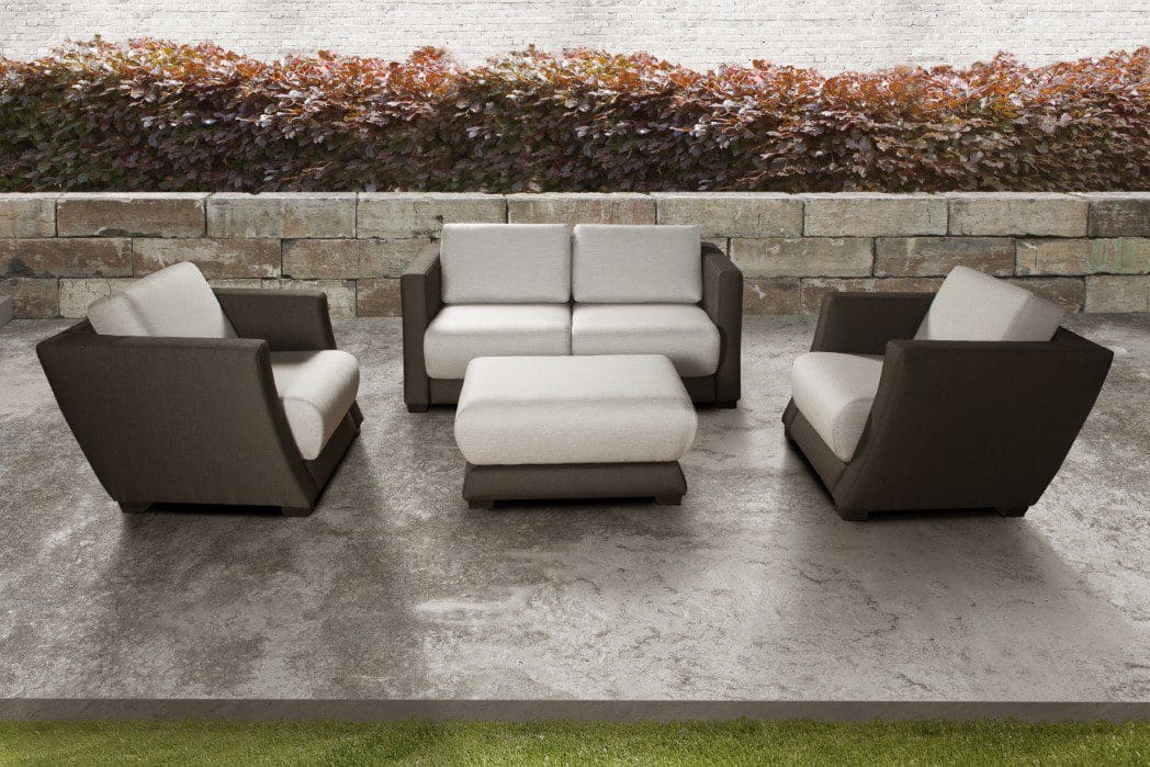 De bank en stoel zijn ontworpen met diepe zitvlakken en ergonomische rugleuningen, waardoor ze uitzonderlijk comfortabel zijn. De bijpassende hocker biedt extra flexibiliteit, ideaal als voetensteun of extra zitplek. Alle onderdelen zijn gemaakt van duurzame materialen en voorzien van weerbestendige kussens die het hele jaar door buiten kunnen blijven.