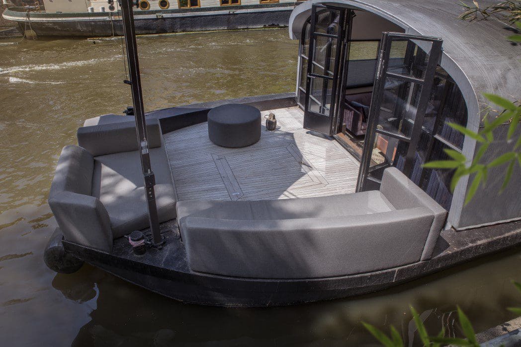 Voor een prachtige woonboot in Amsterdam mocht Design2Chill het voorde, inrichten. De banken moesten de vorm van de boeg volgen en hebben we de hele opstelling op maat geproduceerd. De losse rugleuning zorgt ervoor dat het uitzicht over de beroemde Amsterdamse grachten niet verloren is gegaan.